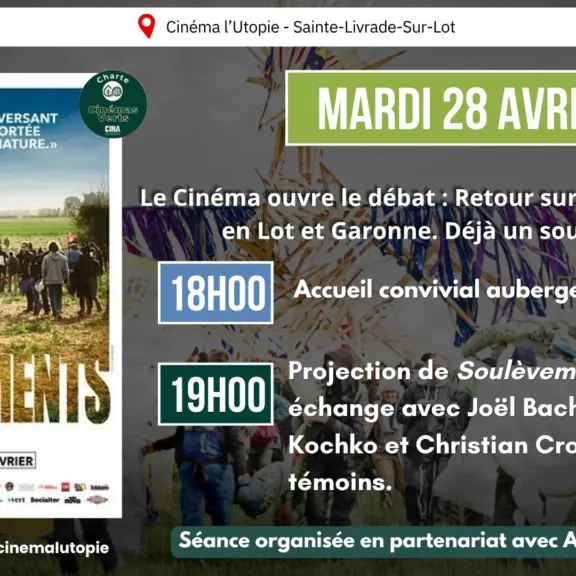 Accueil auberge espagnole avant la projection du documentaire « Soulèvements » à 19h, en présence de Joël Bach, Patrick de Kochko et Christian Crouzet, paysans et témoins.