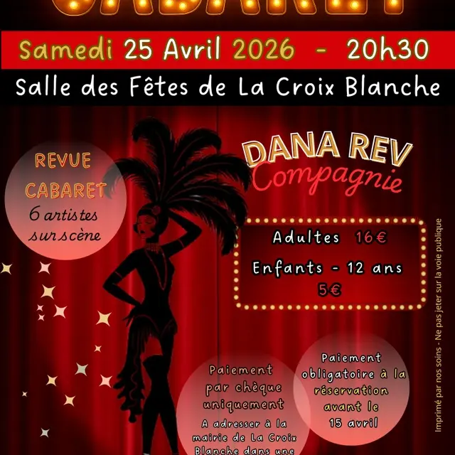 L’association Vitagym organise une soirée Cabaret avec DANA REV Compagnie. Entracte gourmand et rafraîchissant. Réservation avant le 15 avril.