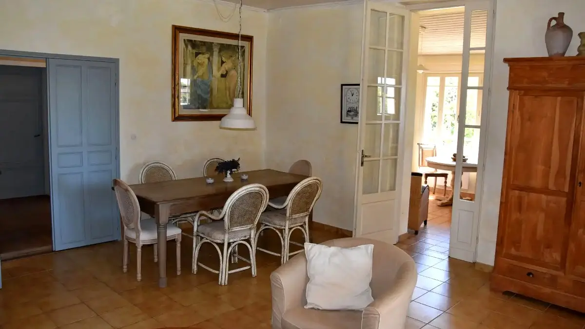 Arnotis est une superbe ferme rénovée du 18ème siècle. La maison est située sur un terrain de 5 ha en bordure du Lot, à seulement 20 mètres de la rivière où un bateau avec moteur est à votre disposition pendant votre séjour. Le lieu est idéal pour la baignade, les activités nautiques ou la pêche. Le gîte est aménagé au rez-de-chaussée. Il y a une cuisine avec un accès direct sur une terrasse couverte. Le séjour donne sur une deuxième terrasse couverte et sur le jardin ensoleillée où se trouve la piscine. Vous trouverez également un grand hall et 4 chambres pour deux personnes (dont deux chambres en suite), une salle de bain et un WC. Une des chambres profite d'un accès sur la terrasse avec vue sur le jardin et la rivière.