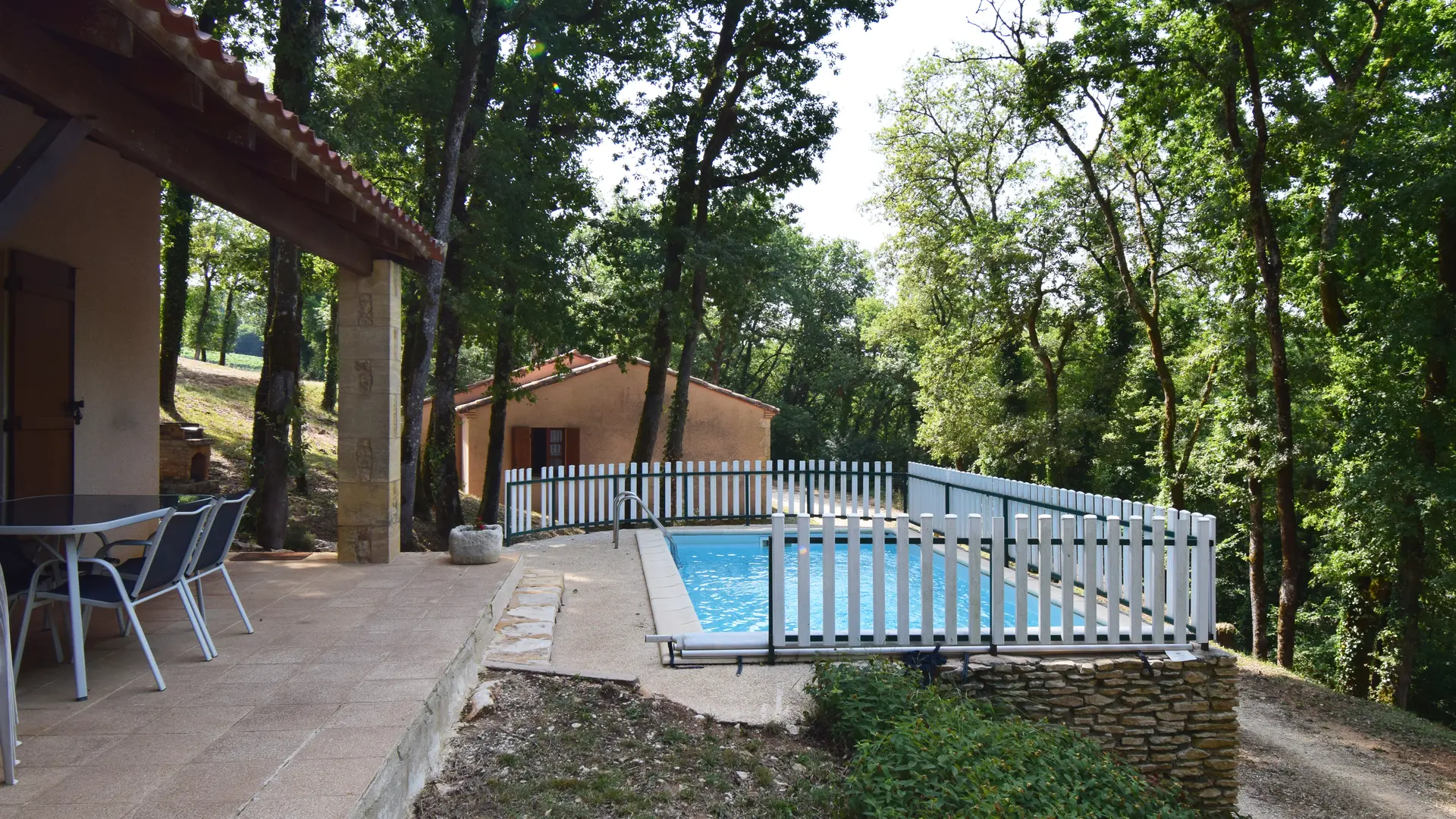 Dans la belle Vallée de Gavaudun, aux portes de la Dordogne, le domaine du Mayne, vaste propriété de 30 ha, abrite cette location indépendante, le Sorbier, de plain pied avec piscine privative. Elle est située à proximité de 2 autres locations, mais sans vis-à-vis, chacune avec piscine privée également. Superficie de la location : 75 m². 2 chambres indépendantes avec 1x140cm et 2x90cm. Salle d'eau. WC indépendant. Cuisine/séjour/salon. Coin cuisine équipé avec lave-vaisselle. Lave-linge. Séjour/salon avec TV écran plat, cheminée ouverte. Accès wifi. Chauffage électrique. Terrasse couverte d'environ 12m² avec salon de jardin. Piscine de 6mx3m, profondeur 1,10m sécurisée (ouverte de fin mai à septembre). Transats. Barbecue. Terrasse commune couverte, équipée d'une table de ping-pong. Parking.