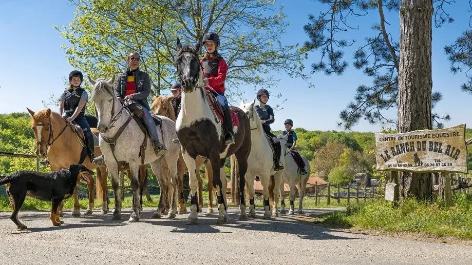 Le Ranch du Bel Air, centre de tourisme équestre niché au creux de la campagne du Lot-et-Garonne à la croisée du Périgord et de l'Océan, organise pour les adultes, ados et enfants de multiples randonnées équestres. Situé à 50 km de Bergerac, 40 km de Villeneuve sur Lot, et 20 km de Tonneins.