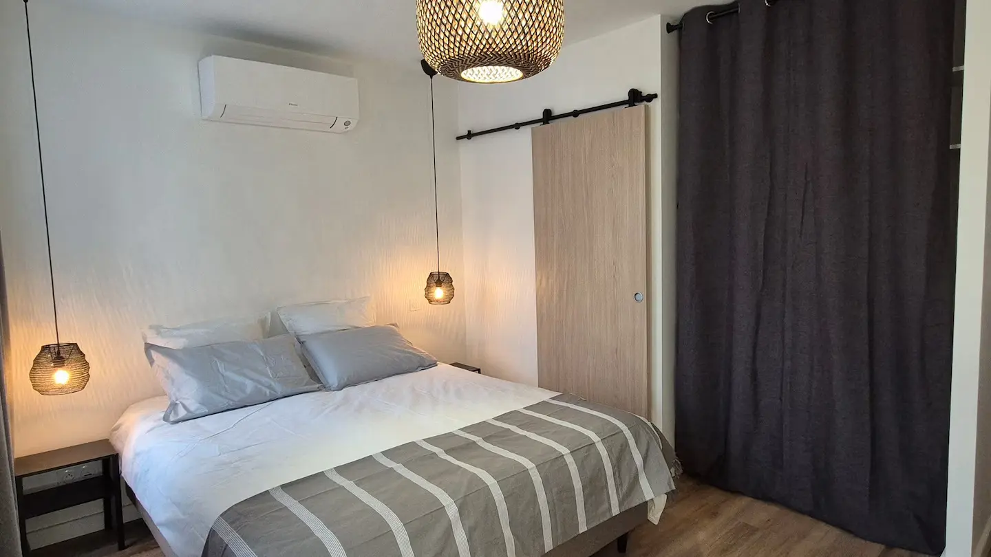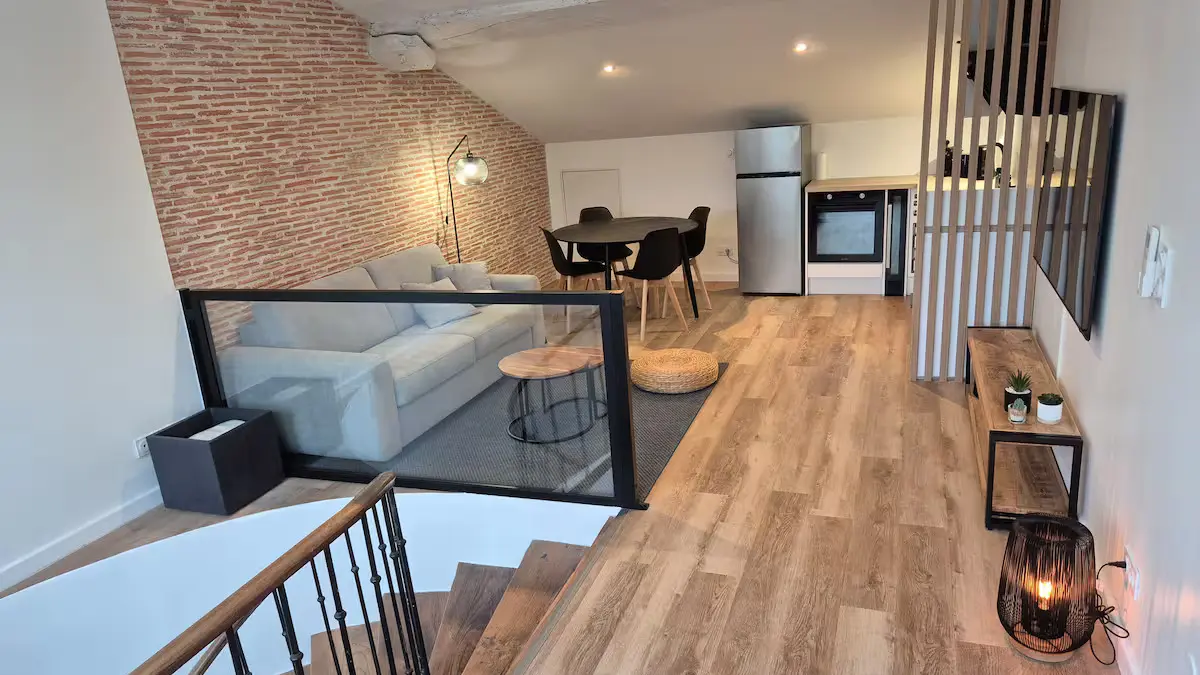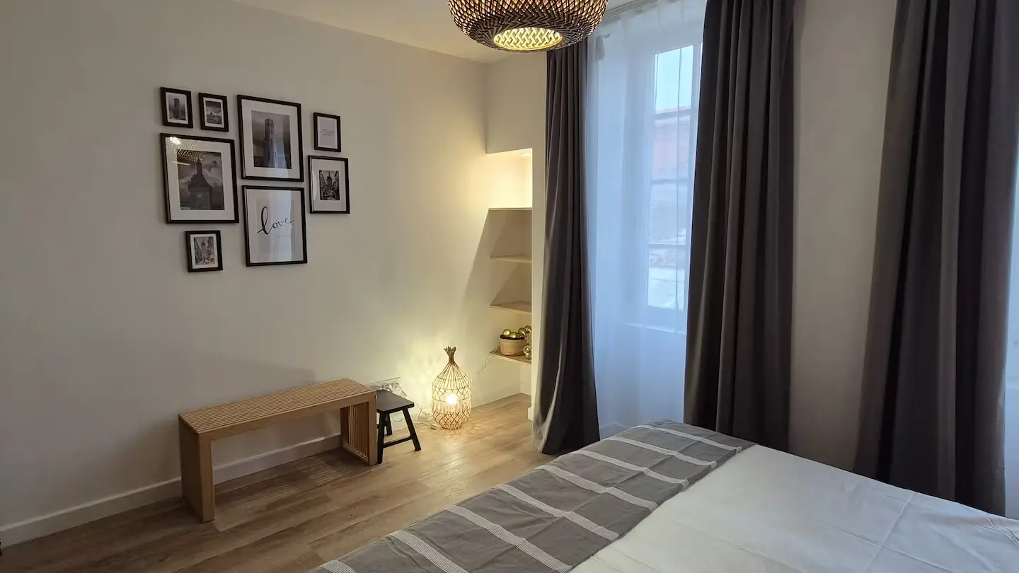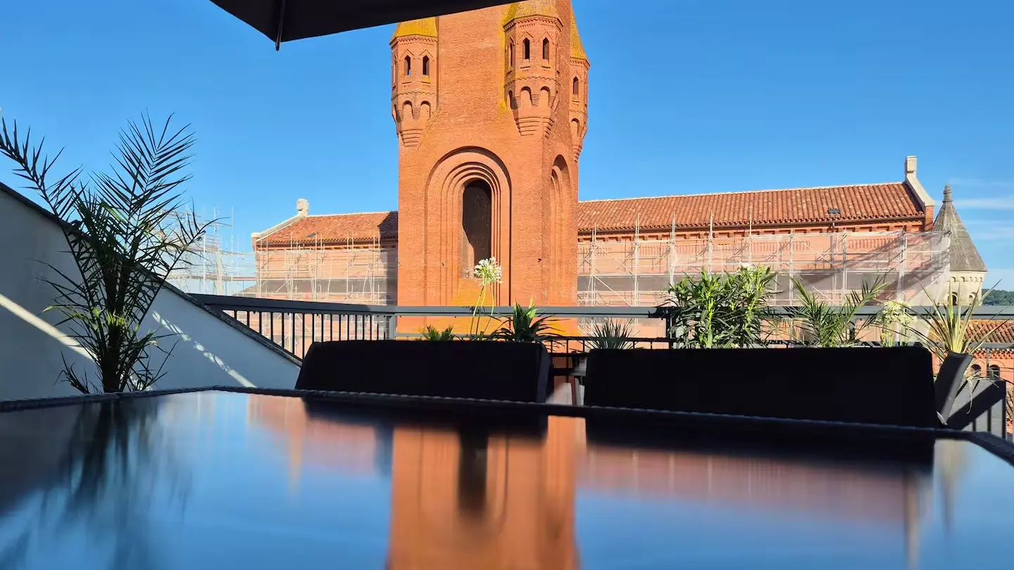 Offrez vous un moment suspendu dans un cadre unique sur une des plus hautes terrasses de la bastide Villeneuvoise. Appartement de charme en plein cœur de Villeneuve-sur-Lot. Offrez vous une parenthèse de confort et d’authenticité dans cet appartement plein de charme, idéalement situé en plein centre historique de Villeneuve-sur-Lot. Niché dans une bâtisse au caractère préservé, ce logement allie le cachet de l’ancien (briquettes apparentes, poutres...) à une décoration moderne et industrielle du plus bel effet. Il est idéal pour découvrir la bastide à pied. Que vous veniez pour une escapade romantique, un séjour en famille ou un voyage pro, vous y trouverez tout le confort nécessaire : climatisation, WiFi, baignoire balnéo... Un extérieur rare en centre-ville! Profitez d’une grande terrasse privée et ombragée, avec une vue exceptionnelle sur les plus beaux monuments de la Bastide.